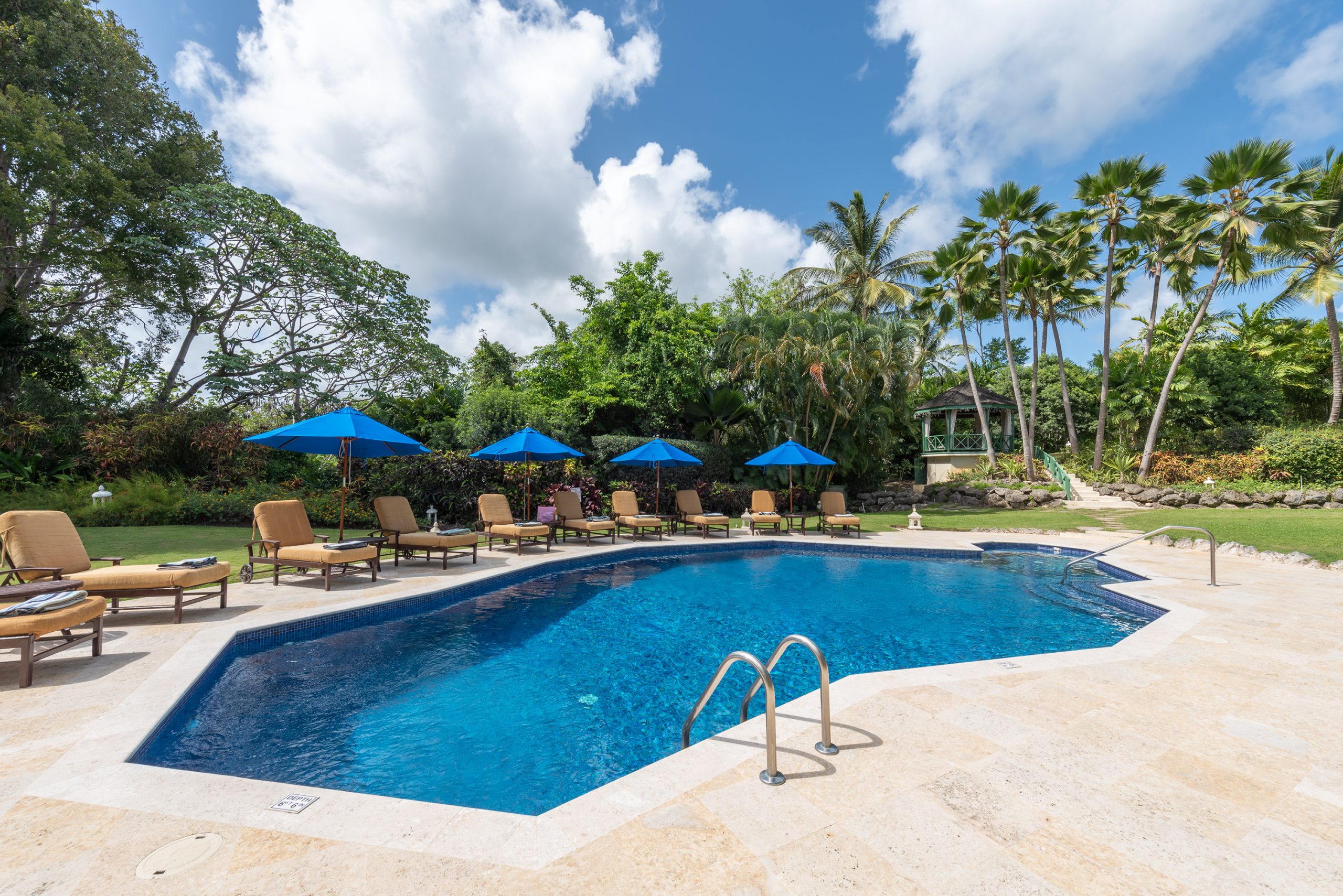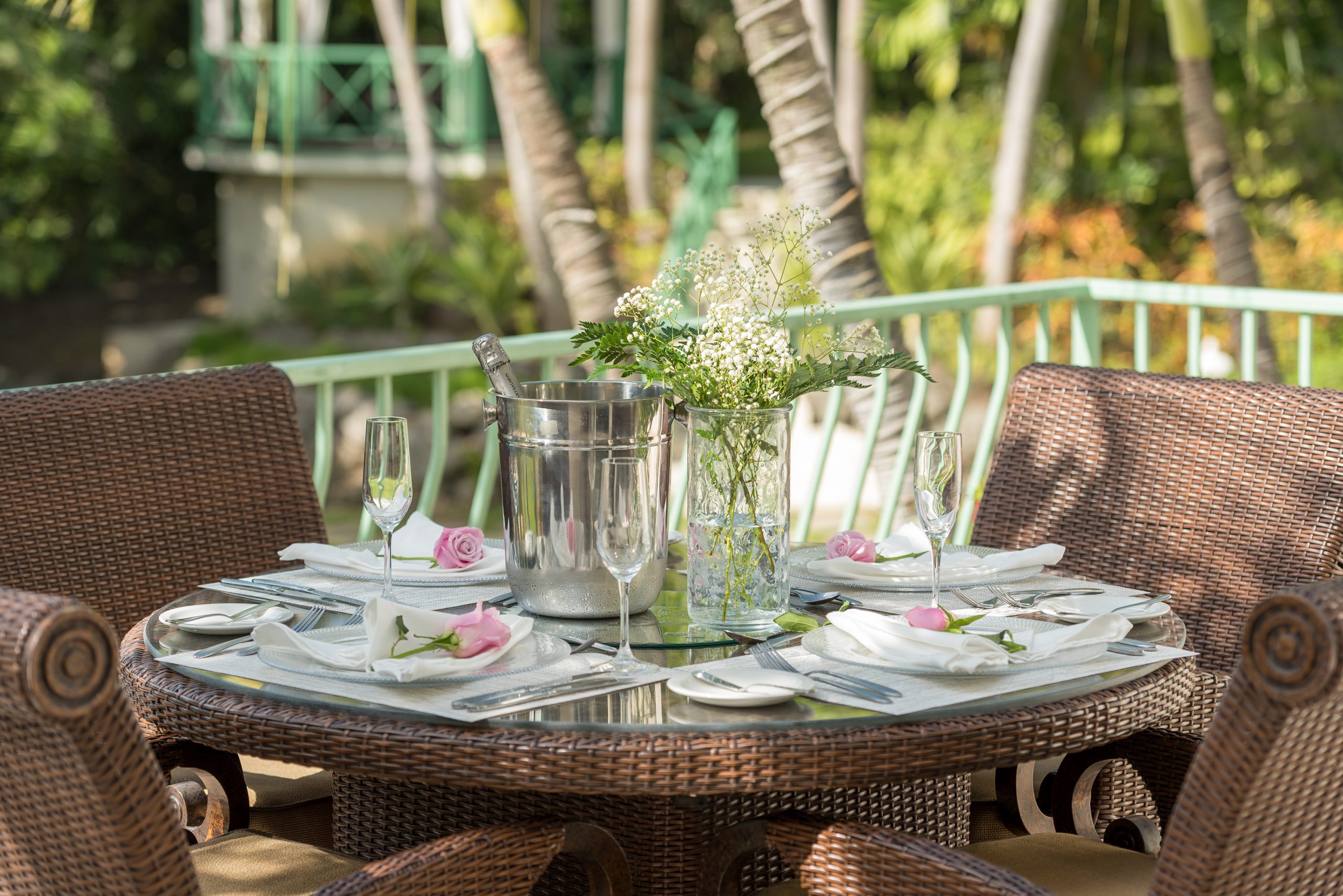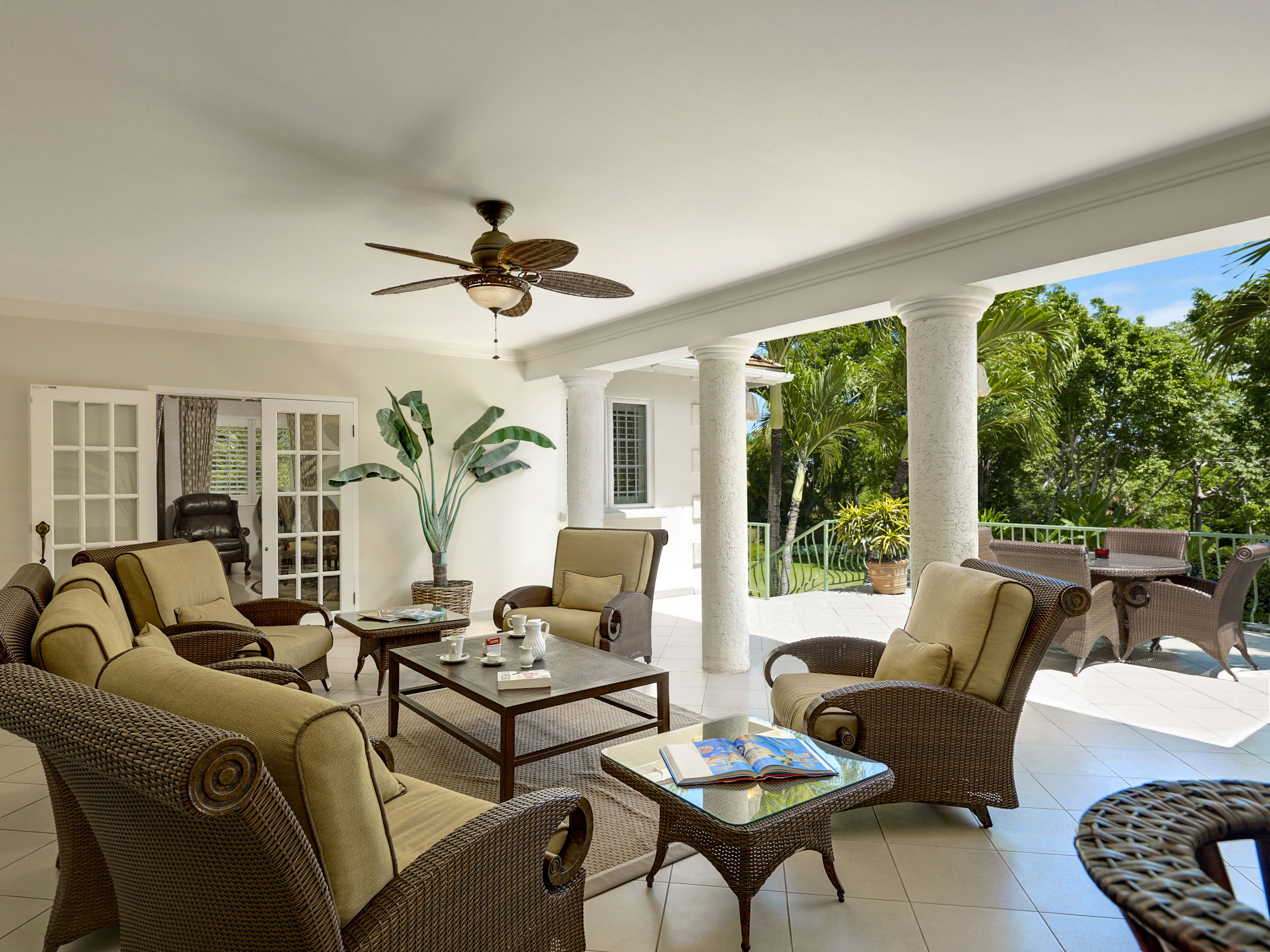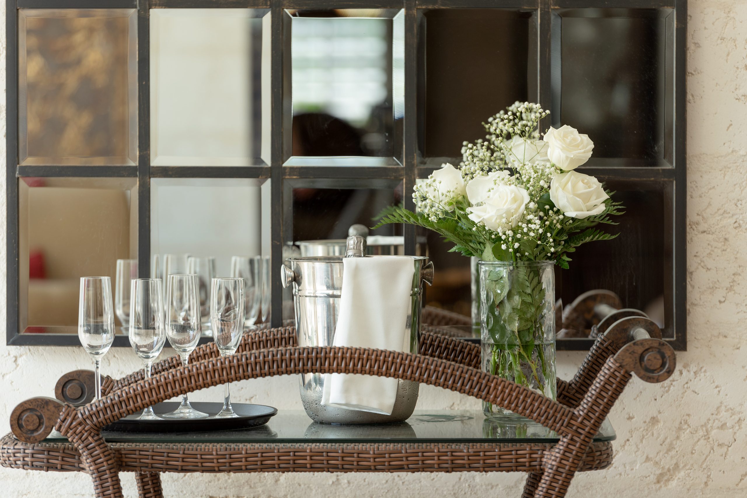 Large French doors open directly onto the lush garden terrace, allowing natural light to flood the room and offering seamless indoor/outdoor living. Whether you’re perfecting your shot over a casual game of pool, enjoying a drink at the high-top bar, or simply soaking in the tranquil garden views, this sophisticated setting is designed for leisure and connection in true Caribbean style.